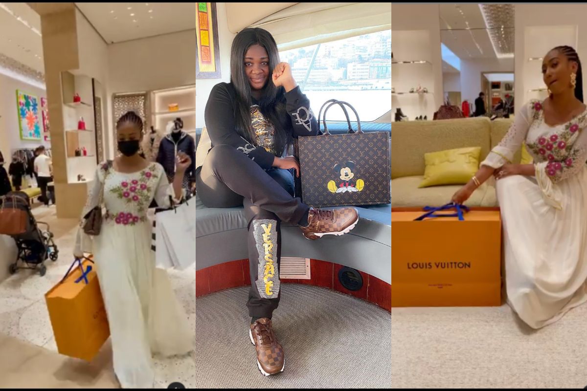 In a video posted to Hajia4Reall’s Instagram page, she was seen shopping for Louis Vuitton Horizon bags in a Louis Vuitton shop in style.