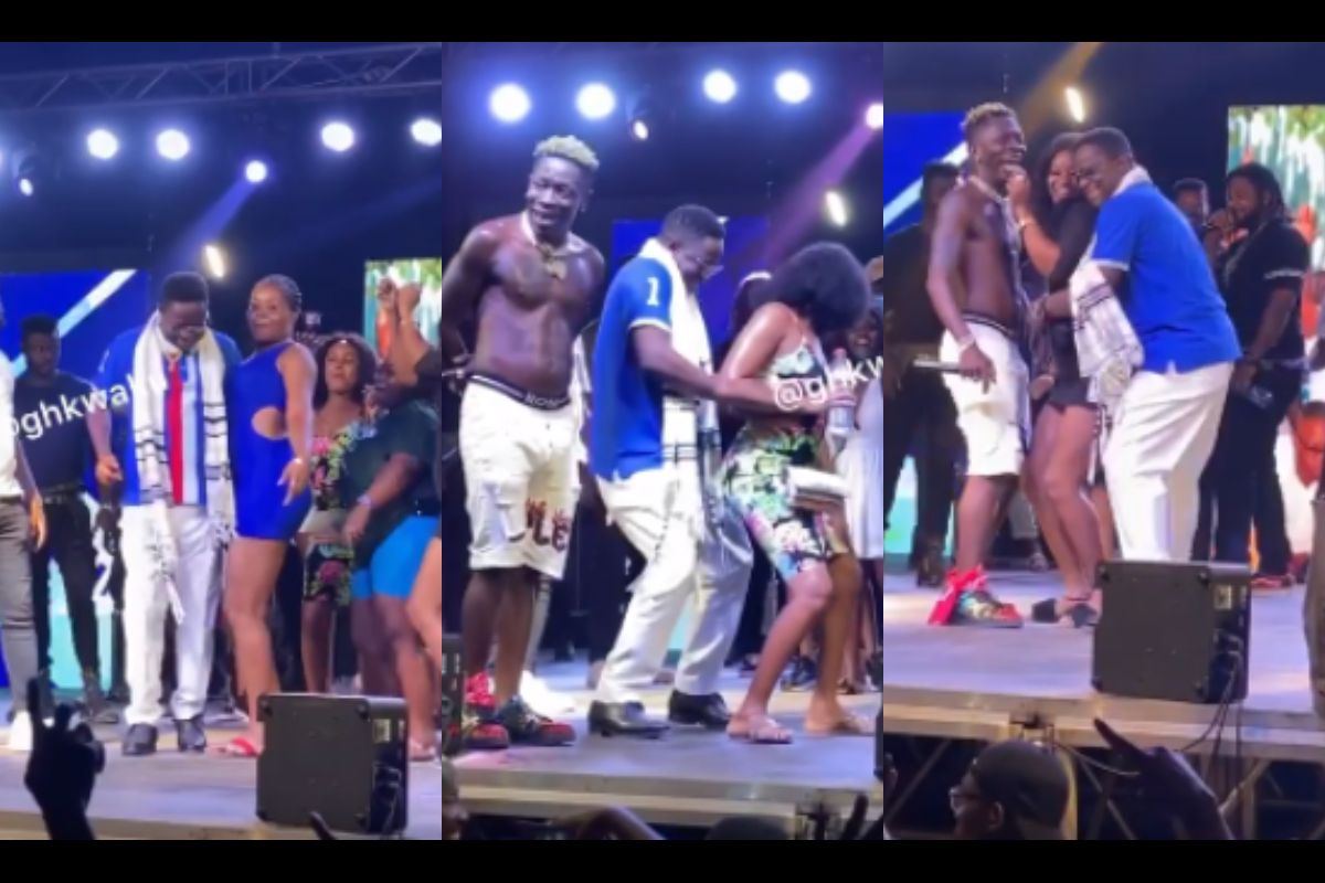 Ghana’s Minister of Energy and MP-elect for Hohoe Constituency, John Peter Amewu, never allowed it to slide when some young ladies gave him their backsides during his victory concert with Shatta Wale in Hohoe.