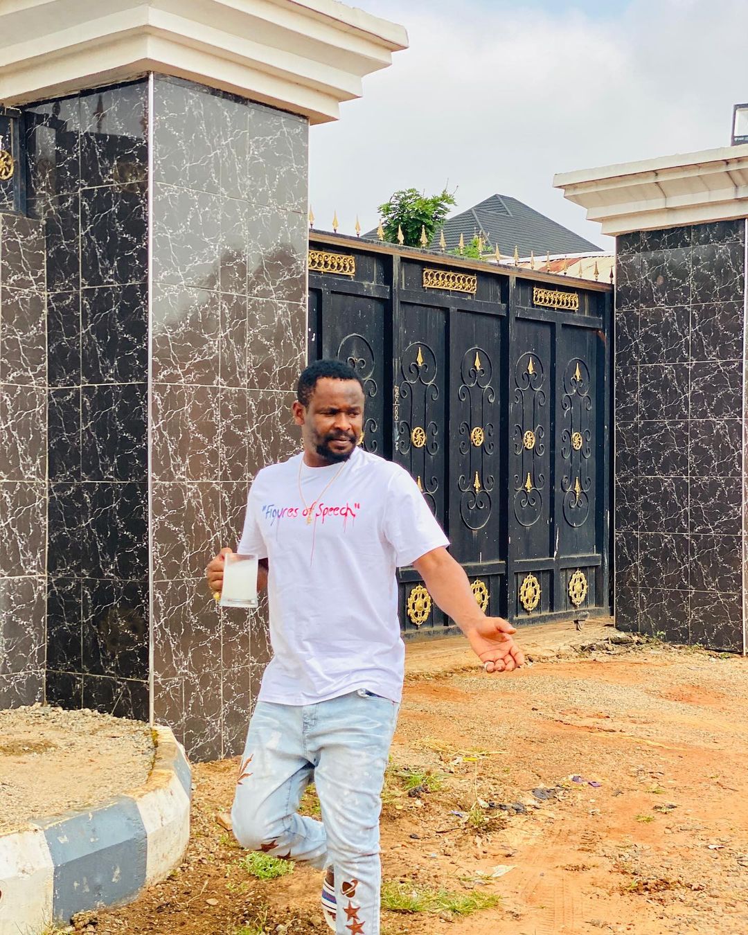 Nigerian Actor, Zubby Michael, has been overwhelmed with the visit of Nigerian Singer Rudeboy, to his house.