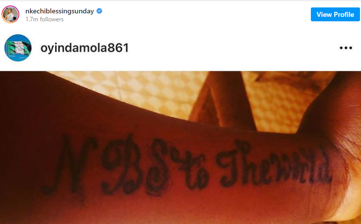 oyinlomodiamond wrote; “Motto: 2021, Our year of Useless TATTOO. I kuku trust NBS???????? No time for rada rada????“