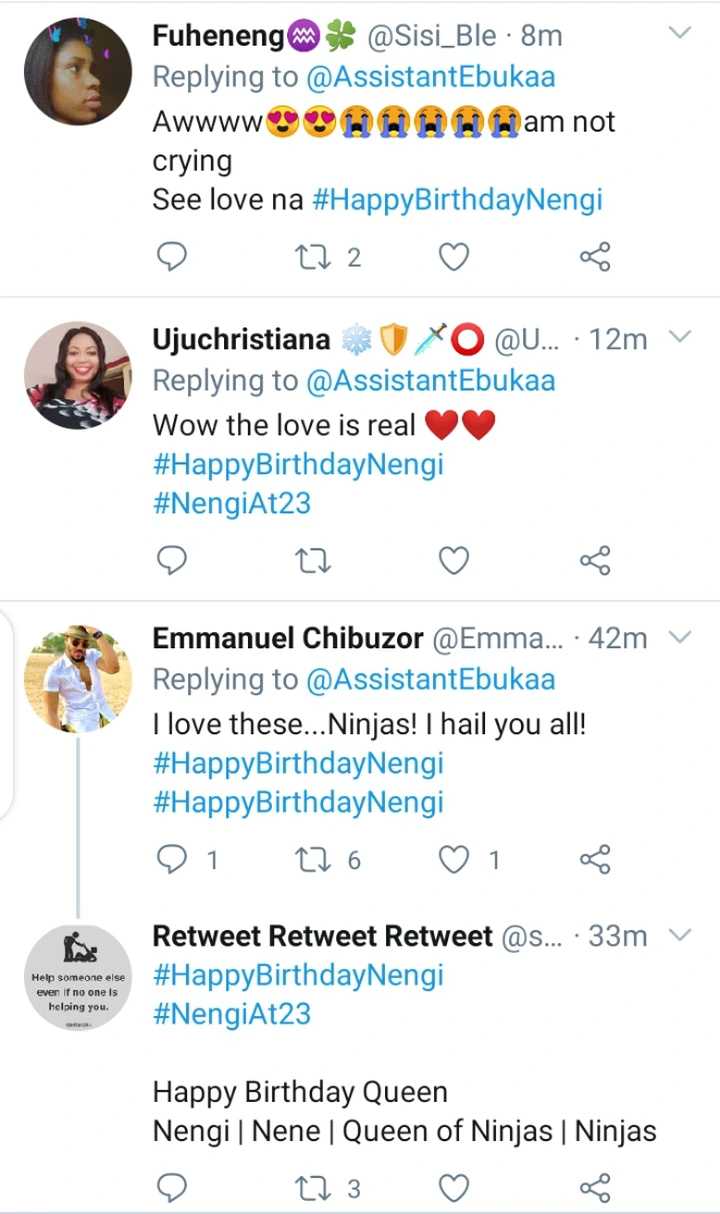 The love is real guys. More birthday wishes loading 馃拑馃徑馃拑馃徑馃拑馃徑 #HappyBirthdayNengi pic.twitter.com/scaMVxZ8VH