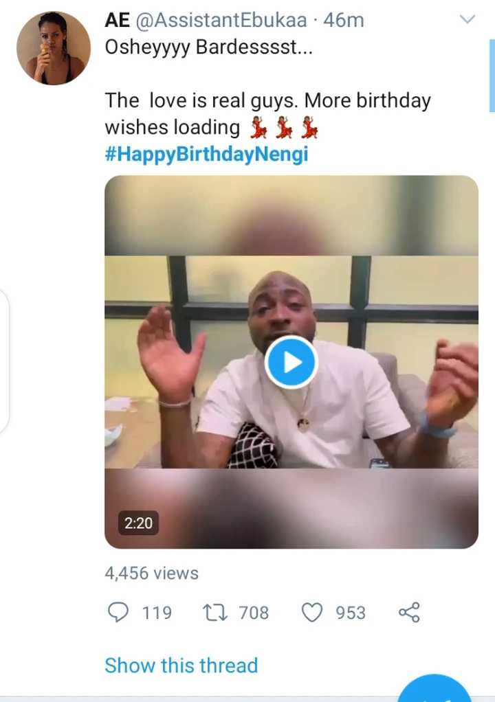 Davido’s birthday message to Nengi has got many Nigerians talking on social media.