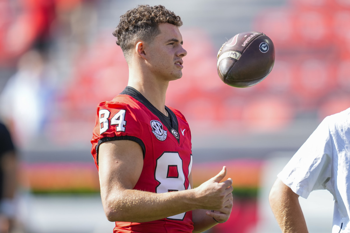 Ladd McConkey, sporting number 84 for the University of Georgia Bulldogs, has caught the attention of football enthusiasts nationwide.