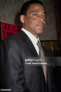 American football player and actor Al Cowlings attends a press conference, at the New Otani Hotel & Gardens in Los Angeles, California, 15th February 1995. The press conference took place during the trial of Cowlings’ friend, OJ Simpson, to launch a premium-rate number for the public to ask Cowlings questions about anything except the murder of Nicole Brown Simpson and Ronald Goldman as well as Simpson’s trial. (Photo by Vinnie Zuffante/Getty Images)