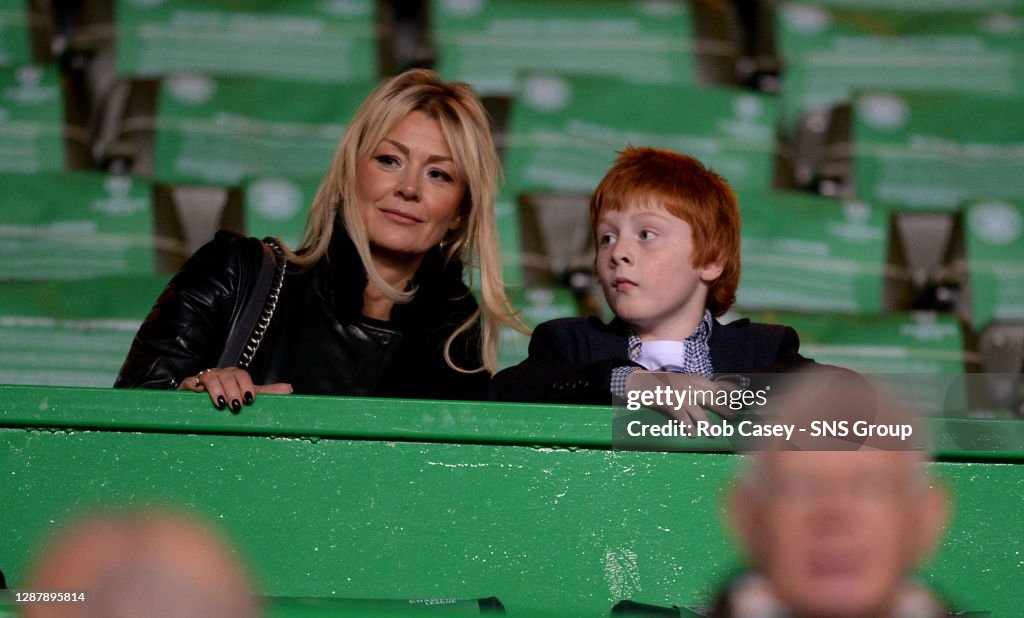 01/10/13 UEFA CHAMPIONS LEAGUE.CELTIC v BARCELONA.CELTIC PARK – GLASGOW.Neil Lennon’s wife Irene takes a seat in the stand with their son Gallacher (Photo by Rob Casey/SNS Group via Getty Images)