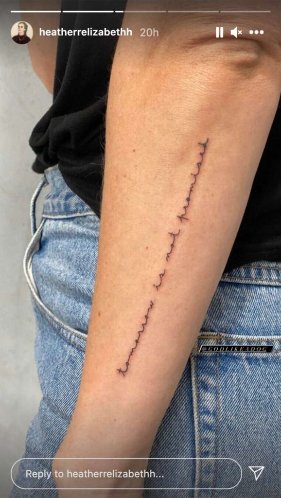 Morris showed off a tattoo on the side of her left forearm on Instagram that featured the words “tomorrow is not promised,” a phrase Rivera tweeted just days before her death.