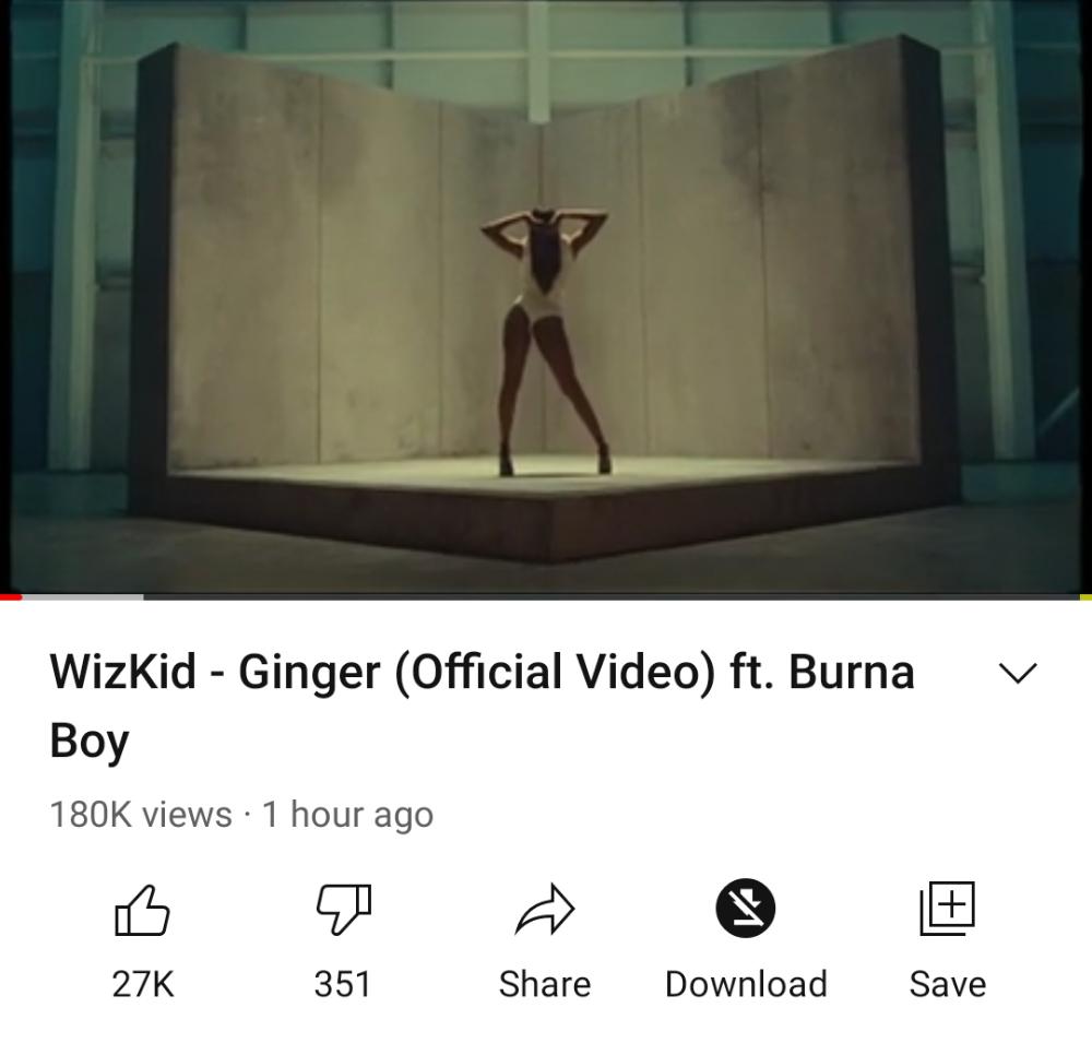 Wizkid announced this via a tweet sighted on his social media platform. Sharing a short teaser of the video, he attached the caption, “Ginger Video out Now!. Just an hour after the video was released to the various streaming platforms, it has hit 180k views on YouTube.