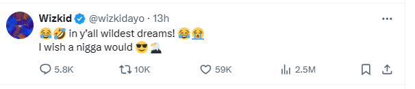 Taking to his Twitter account, Wizkid addressed the issue with a touch of humor. He laughed off the allegation, stating that such an incident could only exist in the imagination of those spreading the rumor.