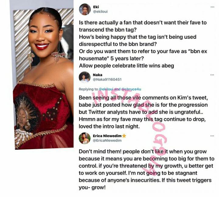 Erica also mentioned that she will not be stagnant because someone feels insecure about her growth. She reiterated that if anyone finds themselves among these people, it will be better to grow.