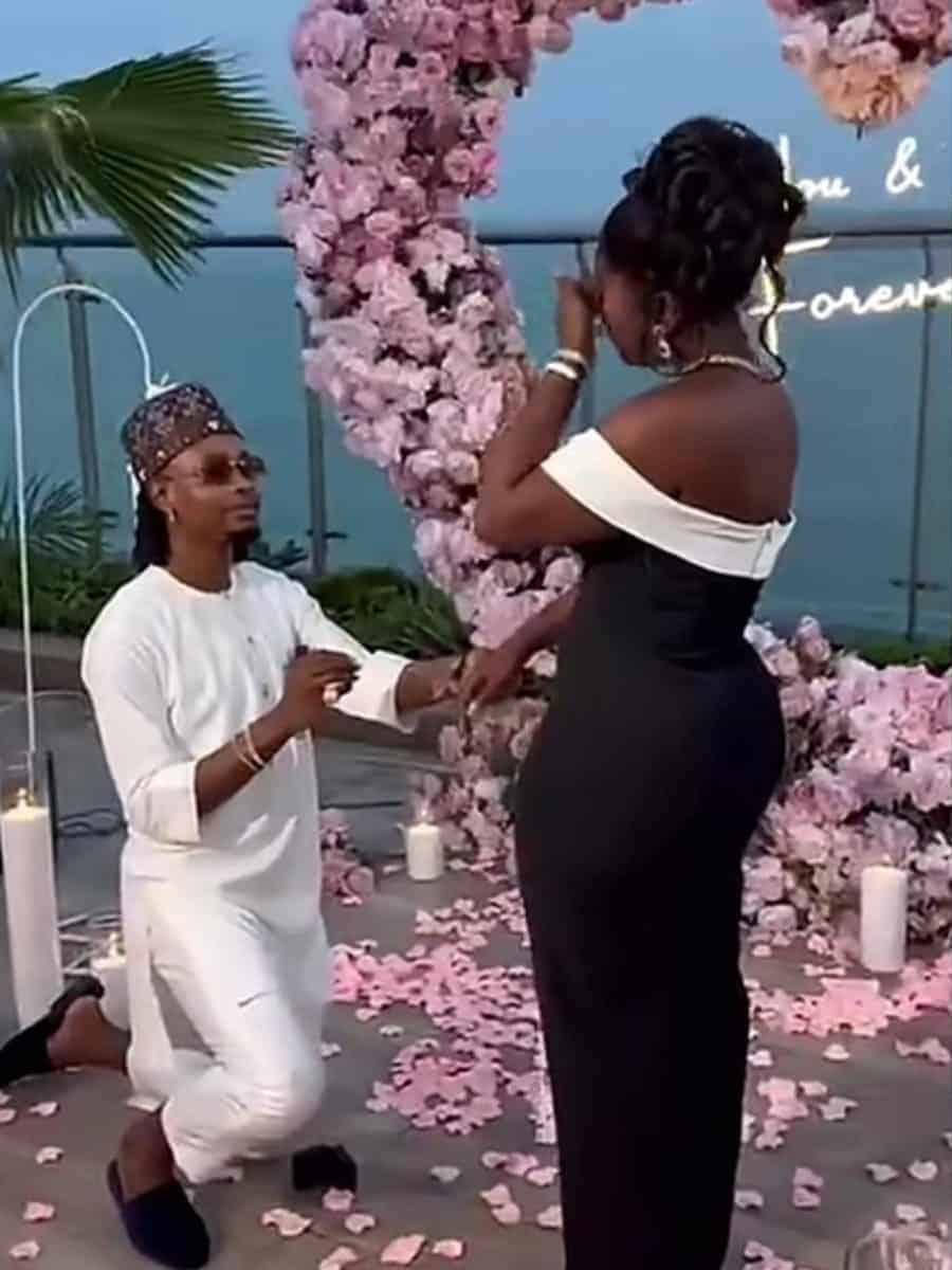 Confirming the engagement, YhemoLee posted a video on his Snapchat showing the romantic moment he proposed to Thayour.