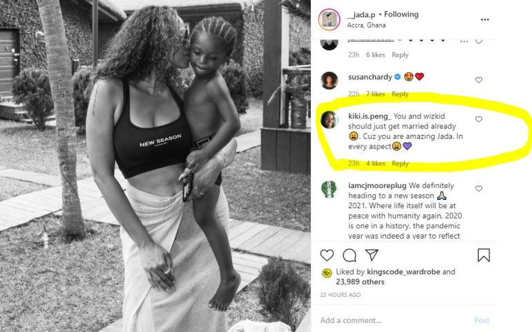 The fan also took to the comment section of the post to comment by saying “You and wizkid should just get married already?. Cuz you are amazing Jada. In every aspect??