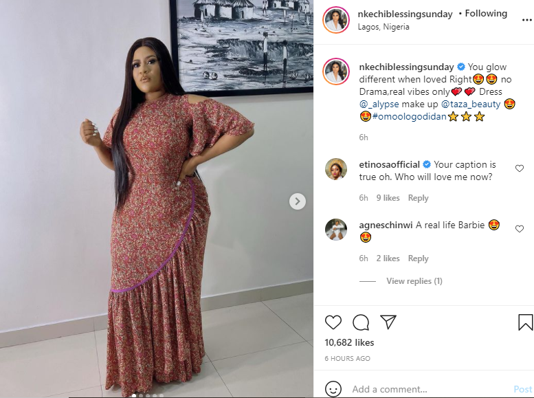 Nkechi Blessing has taken to social media to brag of glowing differently after meeting the right man.