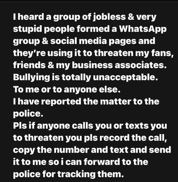 He posted on Instagram that some people made a WhatsApp group and other social media pages to threaten his fans, business partners, and family.