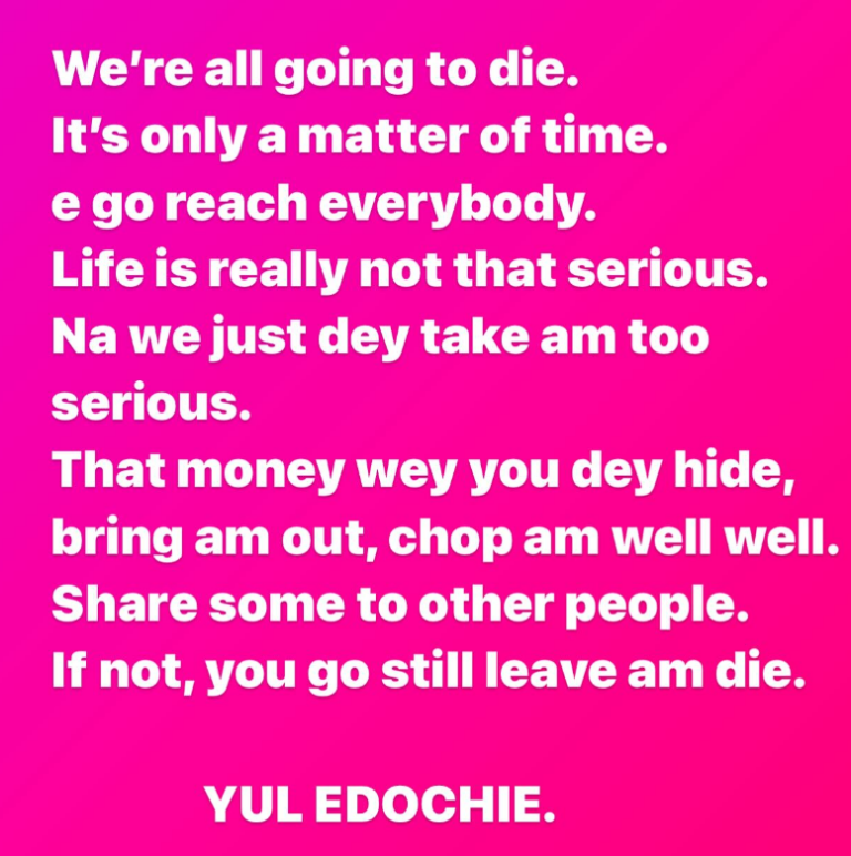 In a video post, Yul, speaking in pidgin English, advised his fans to “chop their money” and also give to those in need. He highlighted that if they don’t spend their savings, someone else will do so after their death. This statement quickly gained attention, causing mixed reactions among his followers.