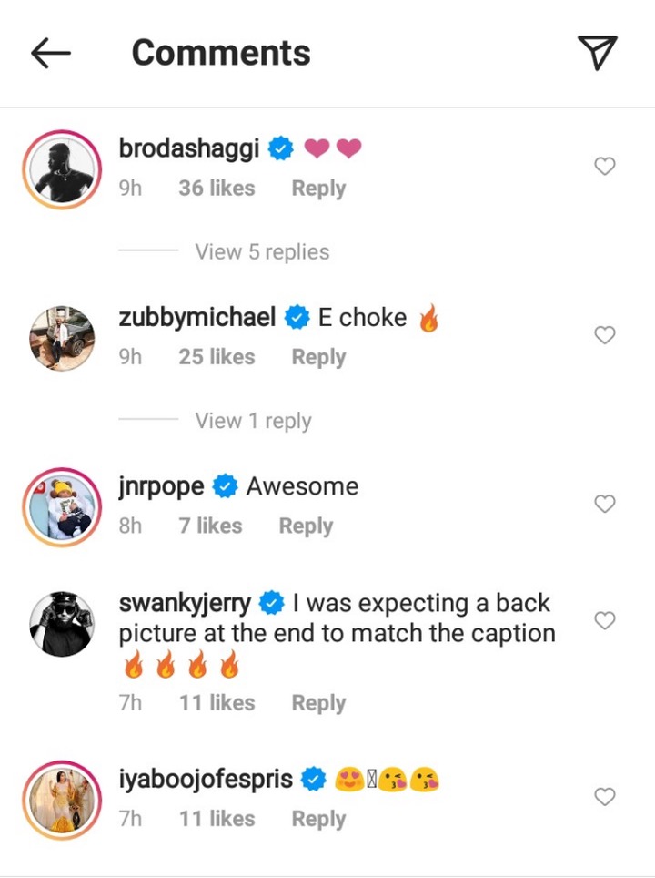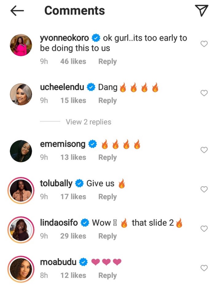 The photos attracted the attention of several celebrities like Zubby Micheal, Iyabo Ojo, Uche Elendu as they trooped to her comment section and gushed over her.