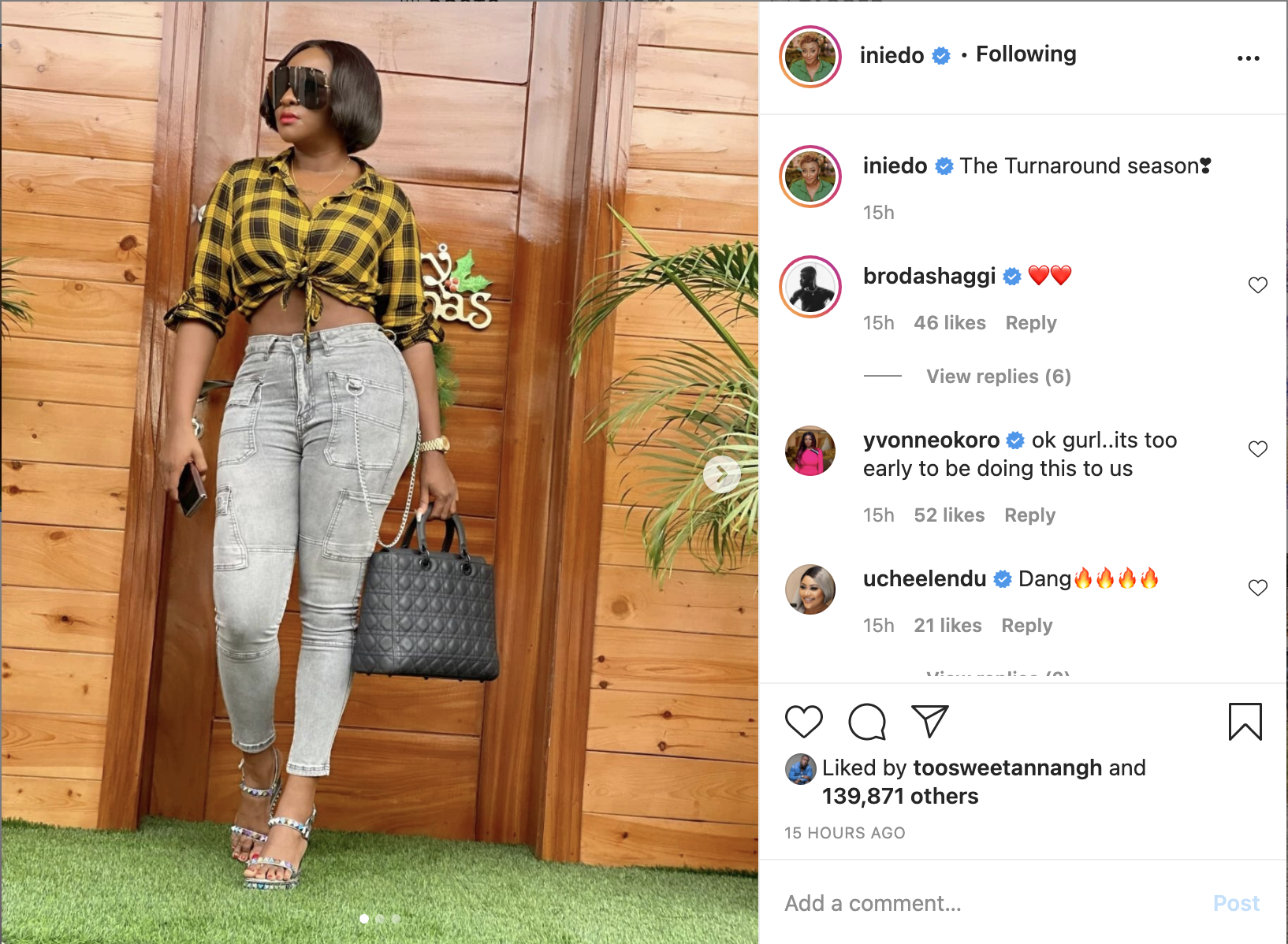 Sharing the photos with her over 10.6 million followers, the 38 years old curvaceous actress who was a judge for the Miss Black Africa UK Pageant in 2013 and was appointed by the United Nations as a united Nations Habitat Youth Envoy wrote; “The Turnaround season❣